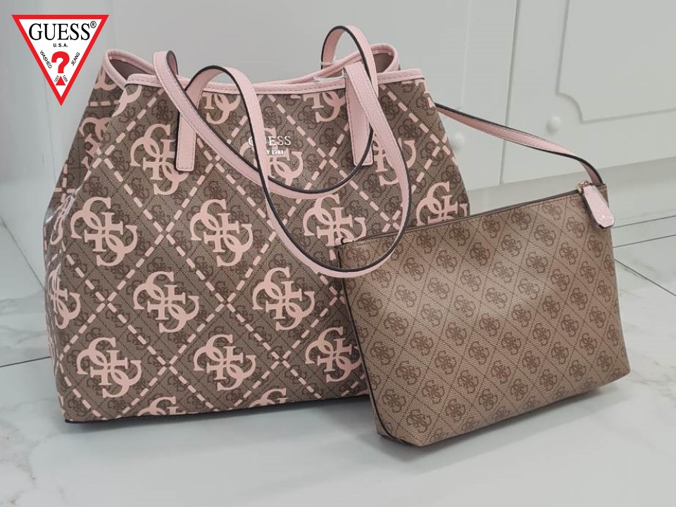 Guess torbica je sestavljena iz umetnega usnja, v kompletu ima manjšo torbico za kozmetiko, njene mere so: višina: 22 cm, dolžina: 32cm.