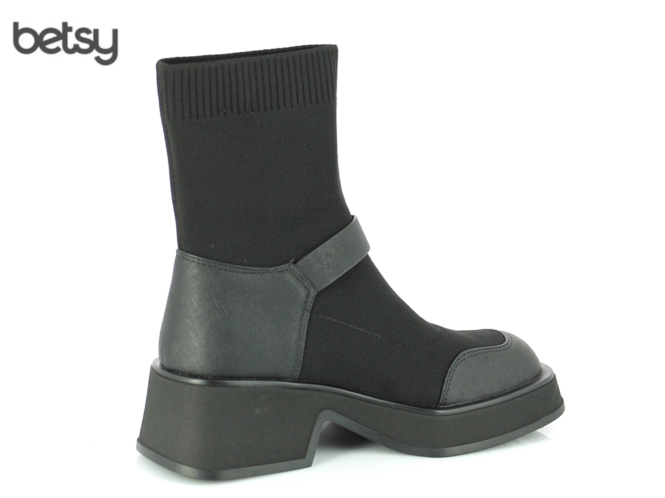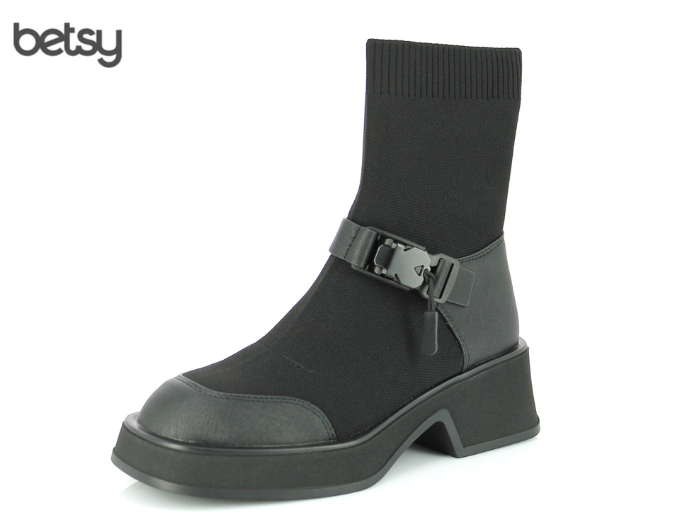 Modni gležnjarji znamke Betsy z oprijeto elastiko bodo poskrbeli, da bo vaš videz nepozaben. Stil je narejen iz tekstila s črnimi visokotehnološkimi usnjenimi vložki na prstih in peti. Gležnarji so okrašeni s trakom fastex, dopolnjujejo pa jih flanelirana podloga in vzdržljiv nedrseč podplat.